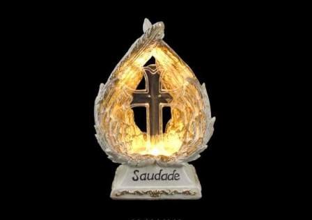 MARFINITE -BASE C/ASAS ANJO BRANCO/OURO C/CRUZ LED 24CM