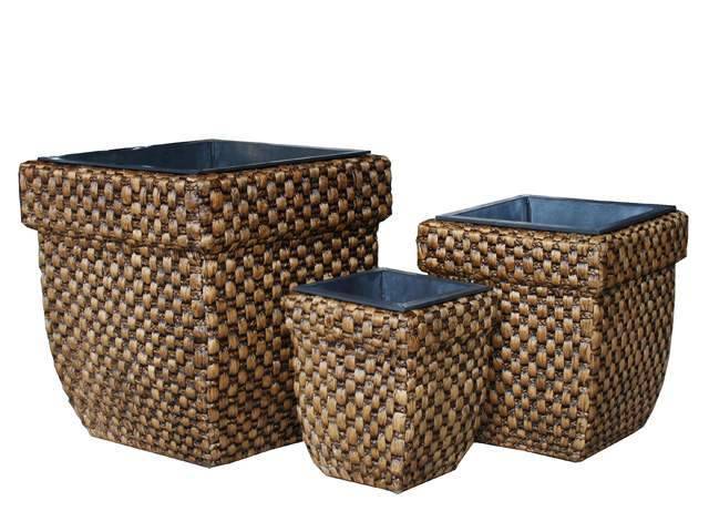 Conj 3 Cestos Vime Quadrados, Castanhos - 50cm (gr)