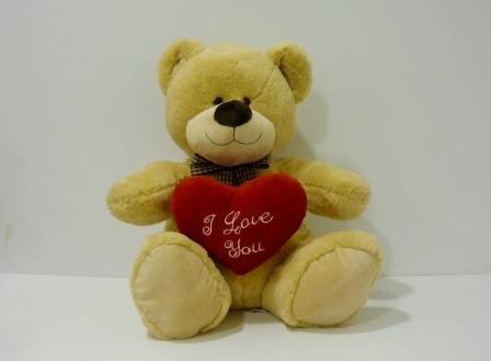 Urso Creme, Laço Quadrados, c/ Coração - 46cm
