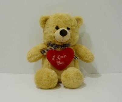 Urso Creme, Laço Xadrês, c/ Coração - 50cm