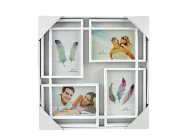 Moldura Plástico Branco,4 Fotos (10x15cm) - 34x34cm