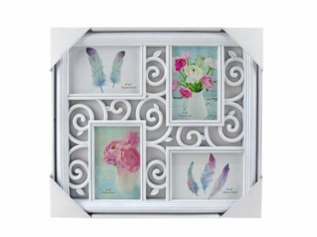 Moldura Plástico Branco,4 Fotos (10x15cm) - 39x34cm