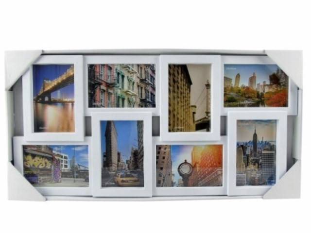 Moldura Plástico Branco,8 Fotos (10x15cm) - 59x29cm