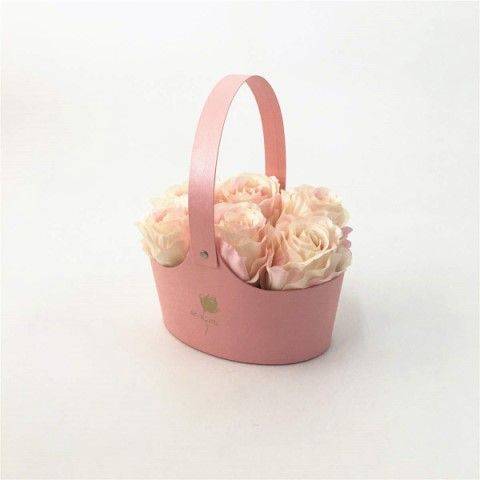 Cesta Cartão Oval c/ Asa, Rosa - 20x16x13cm (flores não incluídas)