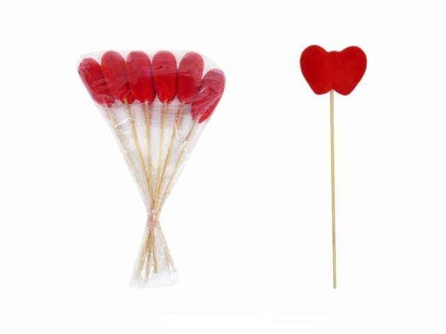 EMB. C/6 PICKS 20CM C/CORAÇOES VERMELHO 5CM
