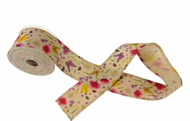 Fita Flores, Borboletas Lilás/Amarelo - 7cmx15mt