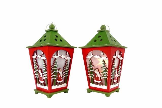 Lanterna Madeira c/ Luz, Verde - 11x11x23cm