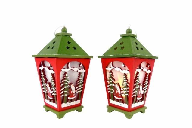 Lanterna Madeira c/ Luz, Verde - 9x9x19.5cm