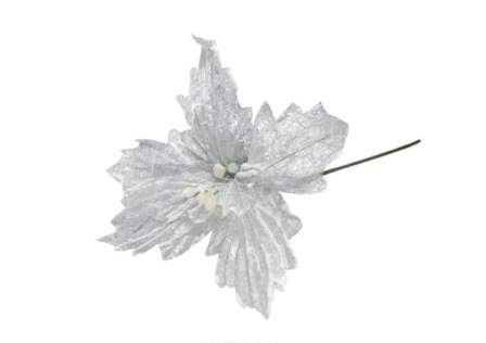 DEC. NATAL -FLOR POINSETTIA COR BRANCO/PRATA 33CM