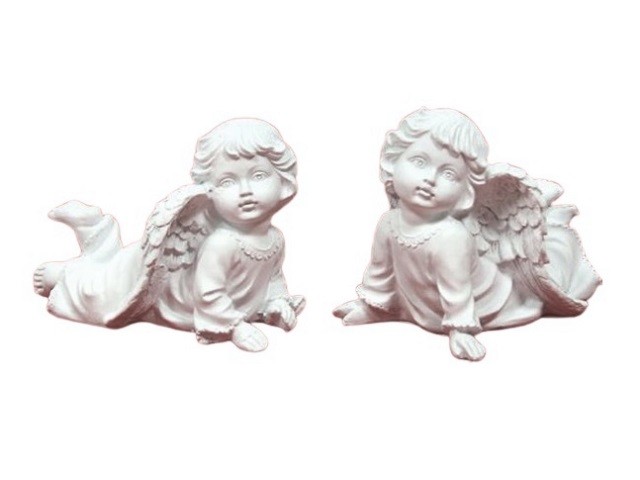 CONJ 2 ANJOS DEITADOS BRANCOS, 11,5CM