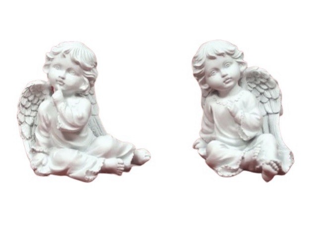 CONJ 2 ANJOS SENTADOS BRANCOS, 13CM