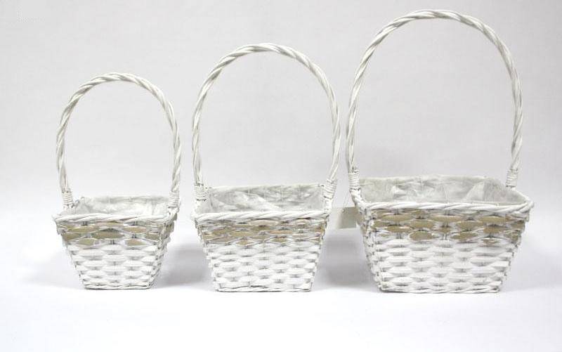Conj 3 Cestas Quad. Branco - 19/24/28cm