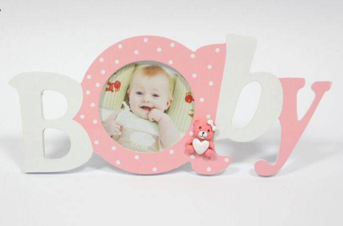 Moldura Redonda "Baby", Rosa/Branco - 28cm