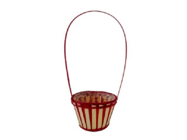 Cesto Redondo c/ Asa, Natural/Vermelho - 17x12cm
