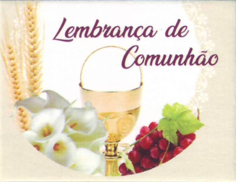 Cartões x50 "Lembrança de Comunhão" 2,5x3,5cm - No interior tem a frase "Gratos pela Vossa Presença"
