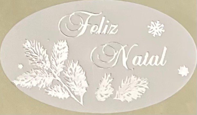 250 ETIQUETAS OVAL BRANCO/PRATA, "FELIZ NATAL", RAMO PINHEIRO, 2.5X4.5CM