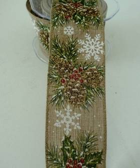 Fita Natural, Azevinho/Flocos Neve - 63mmx10mt