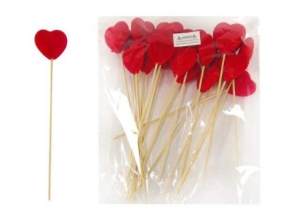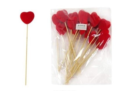 DEC. NAMORADOS -EMB. C/20 ESPETOS CORAÇAO VERM. 5X25CM