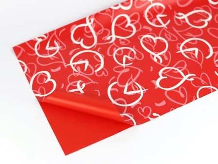 PAPEL QUADRADO x20 FOLHAS VERMELHO C/CORAÇÕES 57x57cm