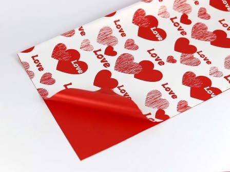 PAPEL QUADRADO x20 COM CORAÇÕES "LOVE" 57x57cm