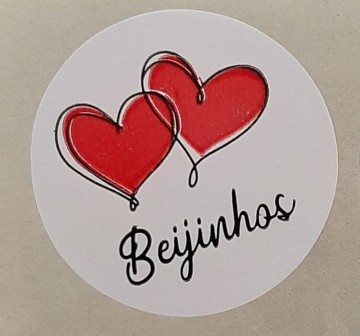 250 ETIQUETAS REDONDAS 2CORAÇÕES "BEIJINHOS", D4cm