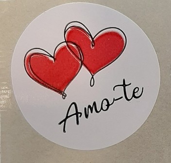 250 ETIQUETAS REDONDAS 2CORAÇÕES "AMO-TE", D4cm