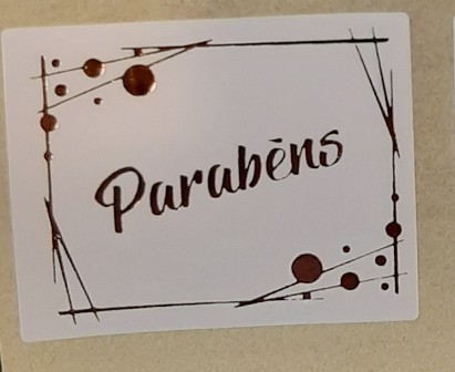 250 ETIQUETAS QUADRADAS MOLDURA C/BOLAS "PARABÉNS" BRANCO/OURO 3,8x3cm