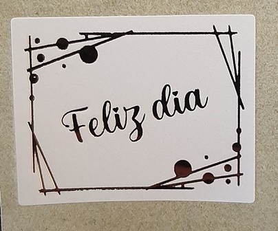 250 ETIQUETAS QUADRADAS MOLDURA C/BOLAS "FELIZ DIA" BRANCO/OURO 3,8x3cm