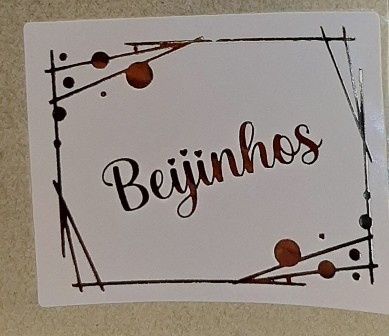 250 ETIQUETAS QUADRADAS MOLDURA C/BOLAS "BEIJINHOS" BRANCO/OURO 3,8x3cm