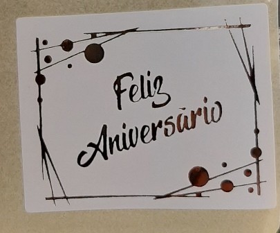 250 ETIQUETAS QUADRADAS MOLDURA C/BOLAS "FELIZ ANIVERSÁRIO" BRANCO/OURO 3,8x3cm
