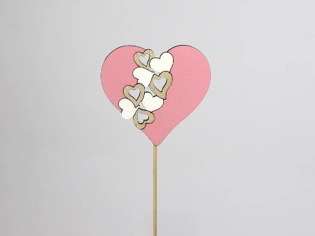 CONJ.6 PICKS CORAÇÃO ROSA C/CORAÇÕES 7cm