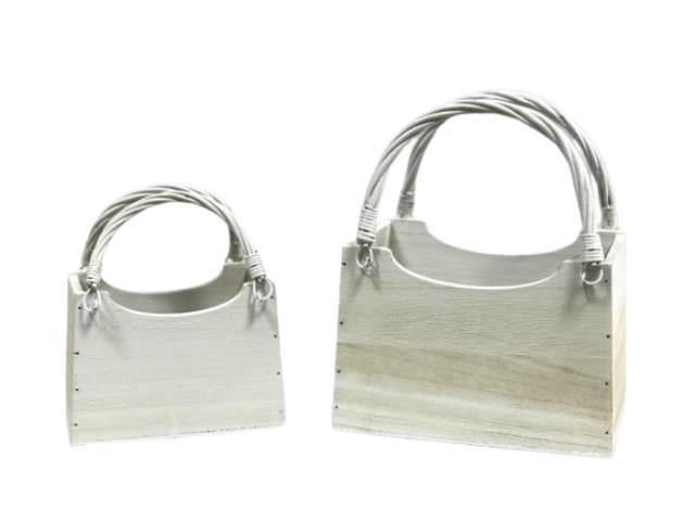 CONJ 2 CESTAS MADEIRA BRANCAS, 20X13X14CM