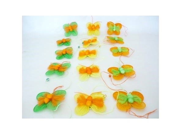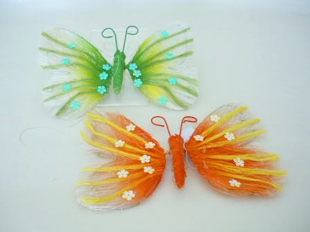BORBOLETA C MOLA LARANJ./VERDE/AMAR. X6 - 8CM
